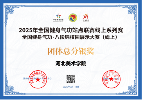 在全国1216支健身气功·八段锦高校社团组运动队中,河北美术学院学生荣获3个二等奖,10个三等奖;在全国770支健身气功·八段锦教工个人组运动队中,河北美术学院教师荣获1个二等奖,2个三等奖。